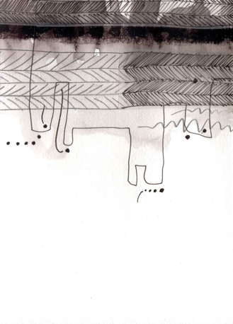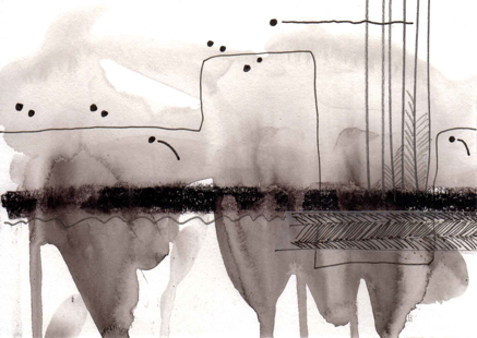 | 12. | During Birdcries, four images by Caitlin Rowly were shown (with permission). Simply titled 'Four black and white pieces', these evocative pen and ink images were first created for volume 2 of my project 'Closet Music: imagined soundworlds', whereby composers and artists produced works intended to be seen and read but not performed aloud. | ![]() |